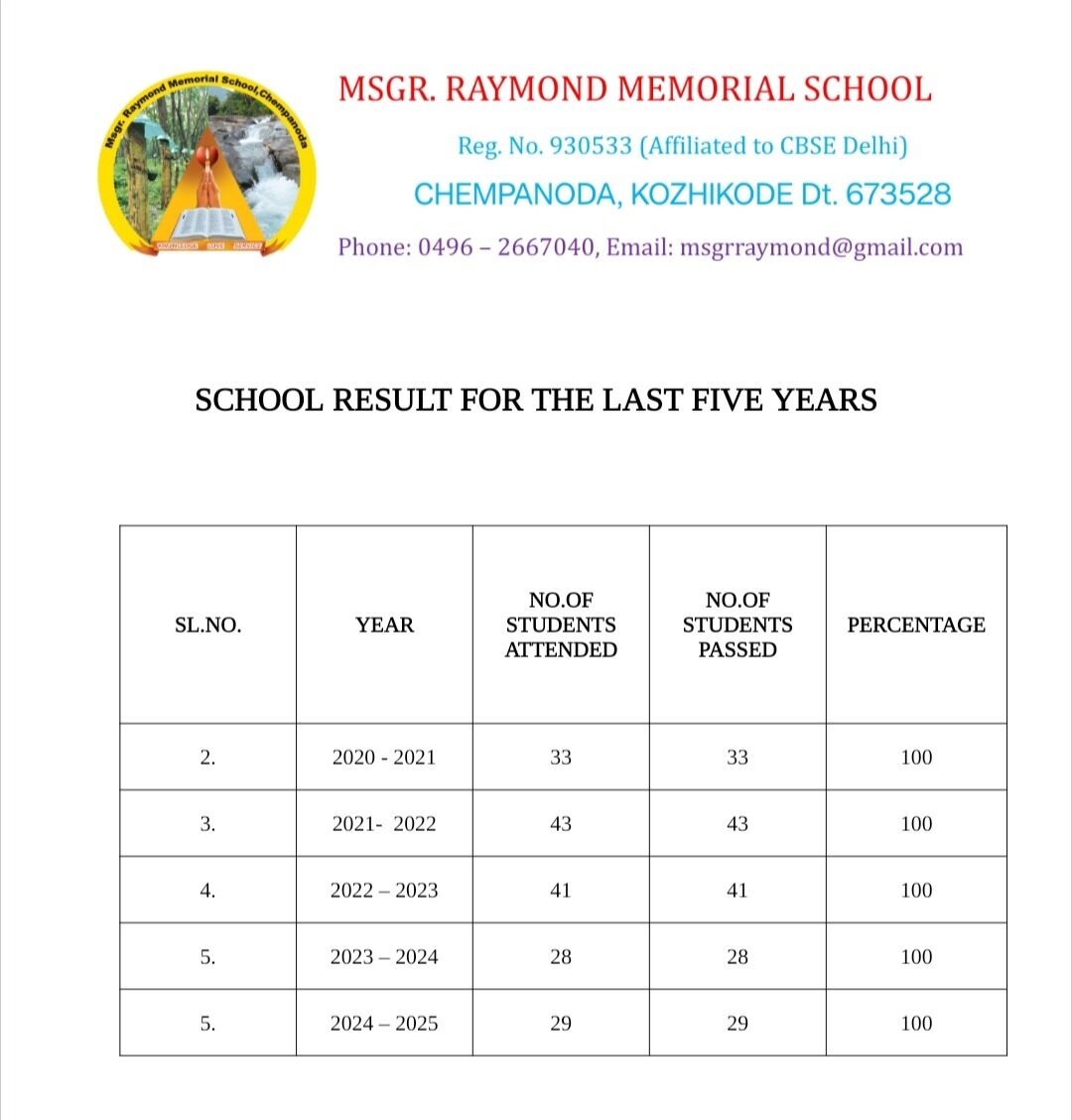 School Results – Last 5 years
